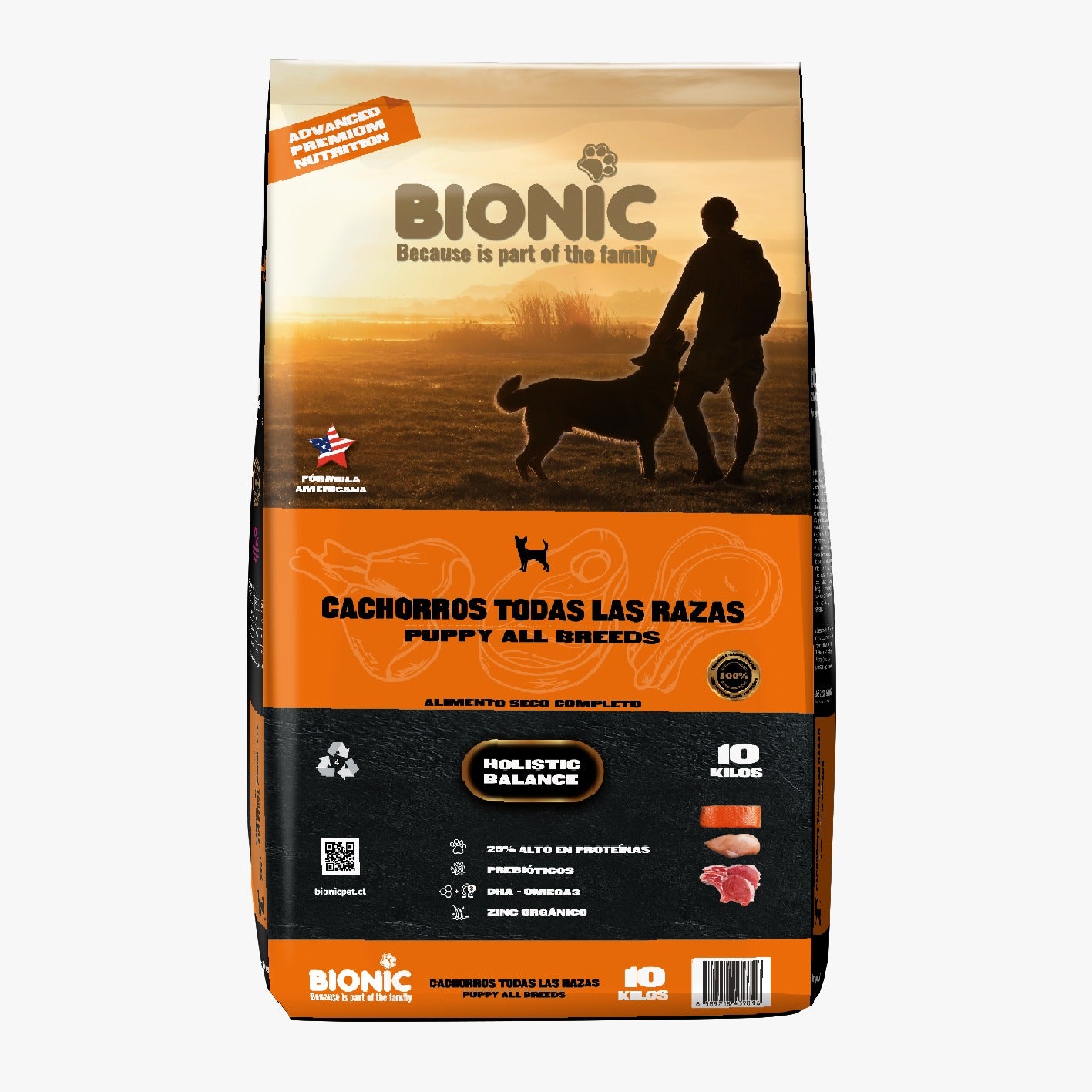 Para los dueños de mascotas, la nutrición adecuada durante el crecimiento es esencial para que los cachorros se conviertan en perros adultos sanos, fuertes y con defensas naturales bien desarrolladas. BIONIC es un alimento creado por veterinarios expertos en nutrición canina, formulado para ofrecer un balance perfecto de proteínas, vitaminas, minerales, DHA y prebióticos para cachorros de todas las razas.